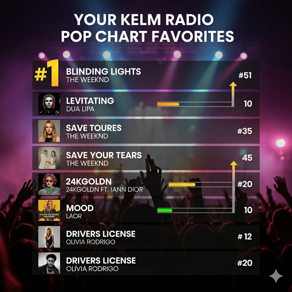 Stay plugged into the biggest hits topping the charts with Pop Chart Favourites from global anthems to trending tracks, we bring you the songs everyone’s talking about . fresh, fun and full of energy, this show is your weekly dose of the hottest and pop music around the world. if its climbing the charts, you would here it here first on KELM RADIOÂ